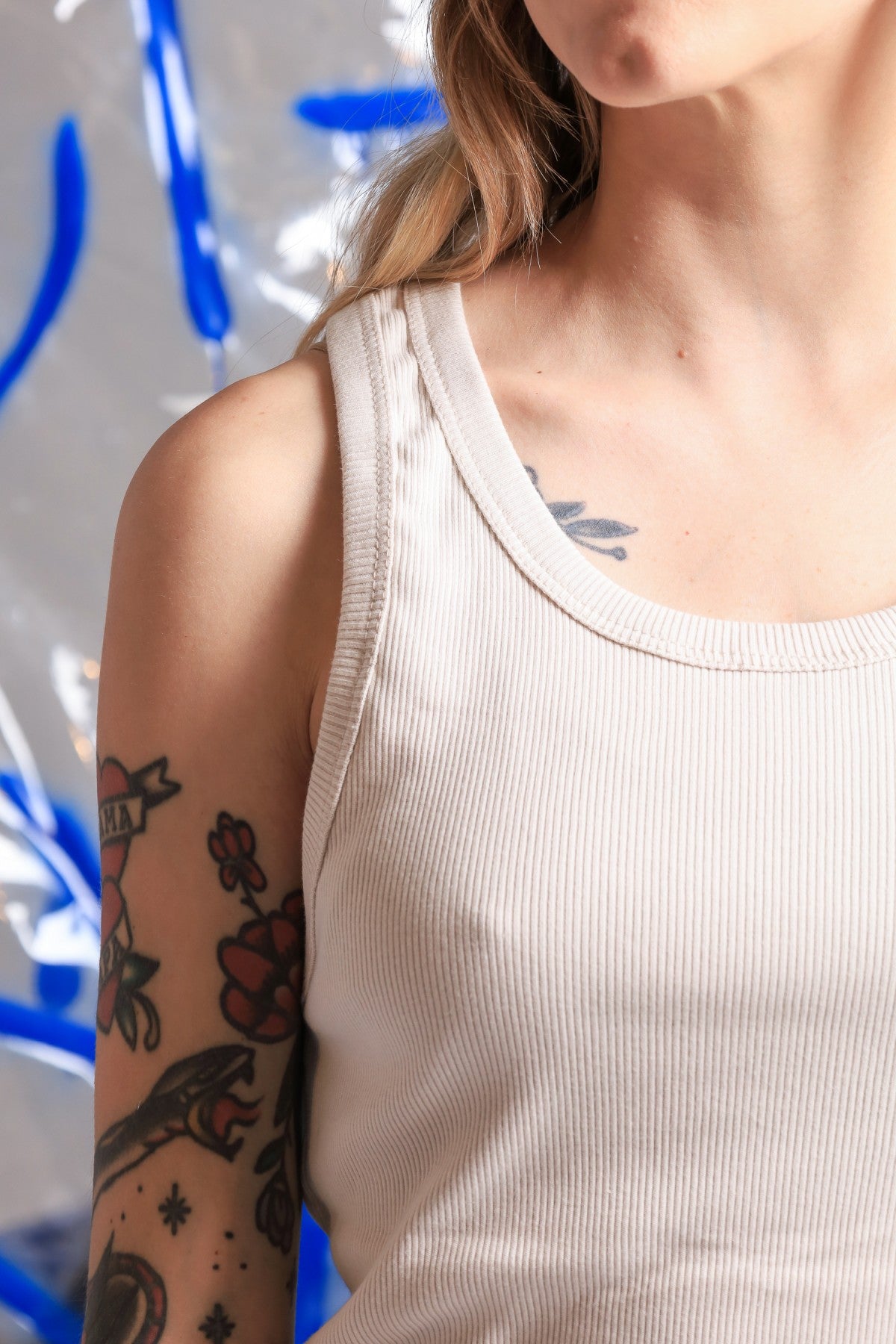 Musculosa lisa de morley con cuello redondo. Calce Regular.