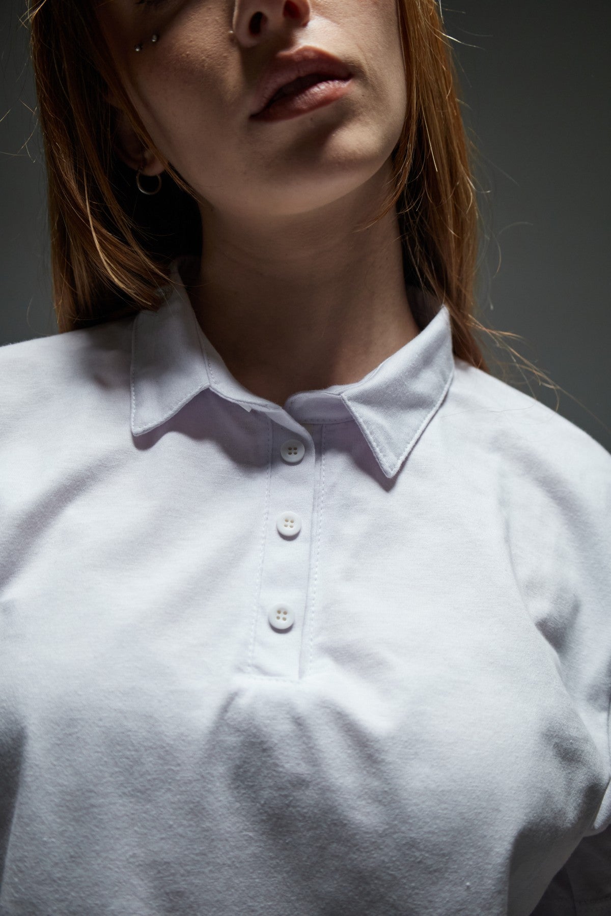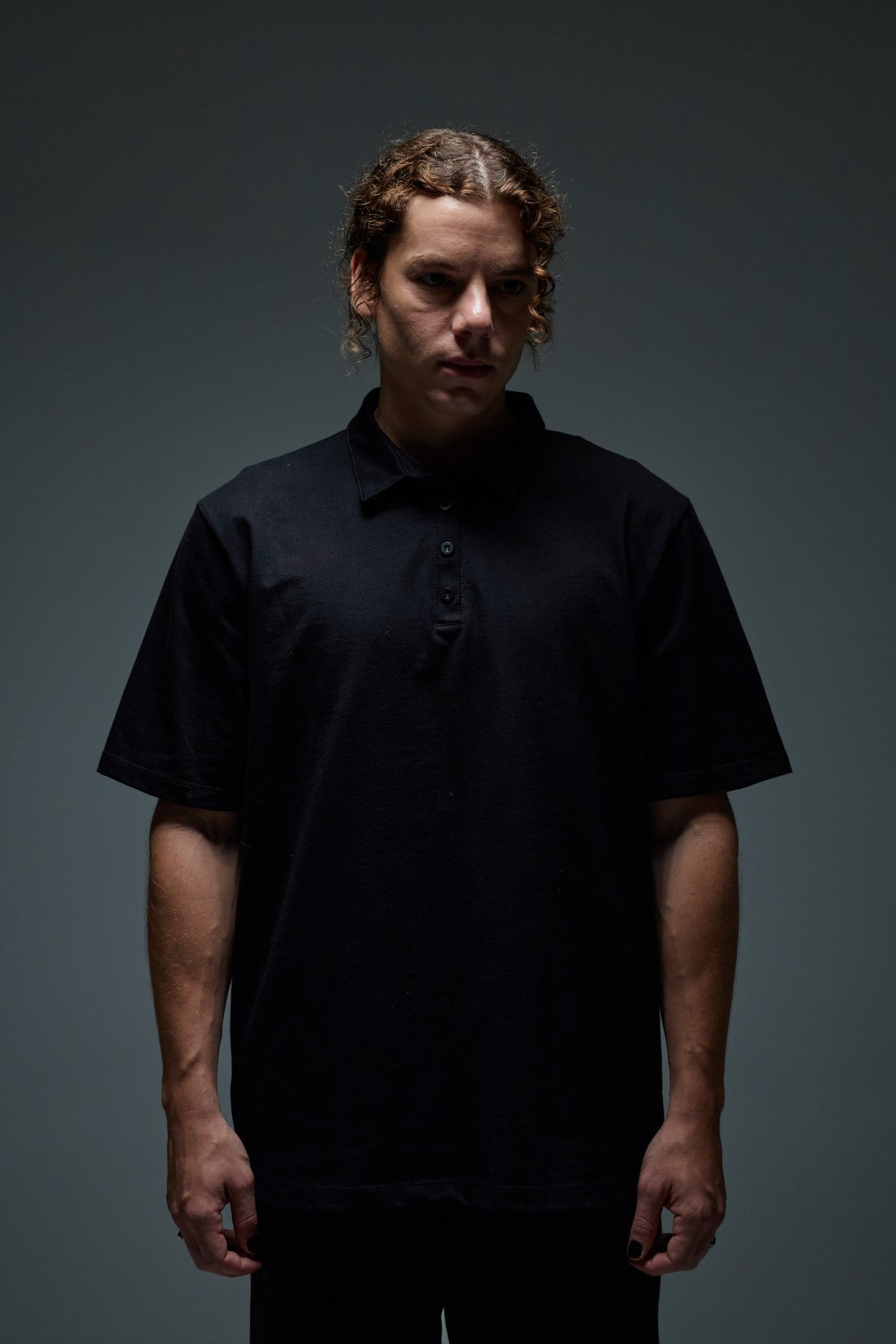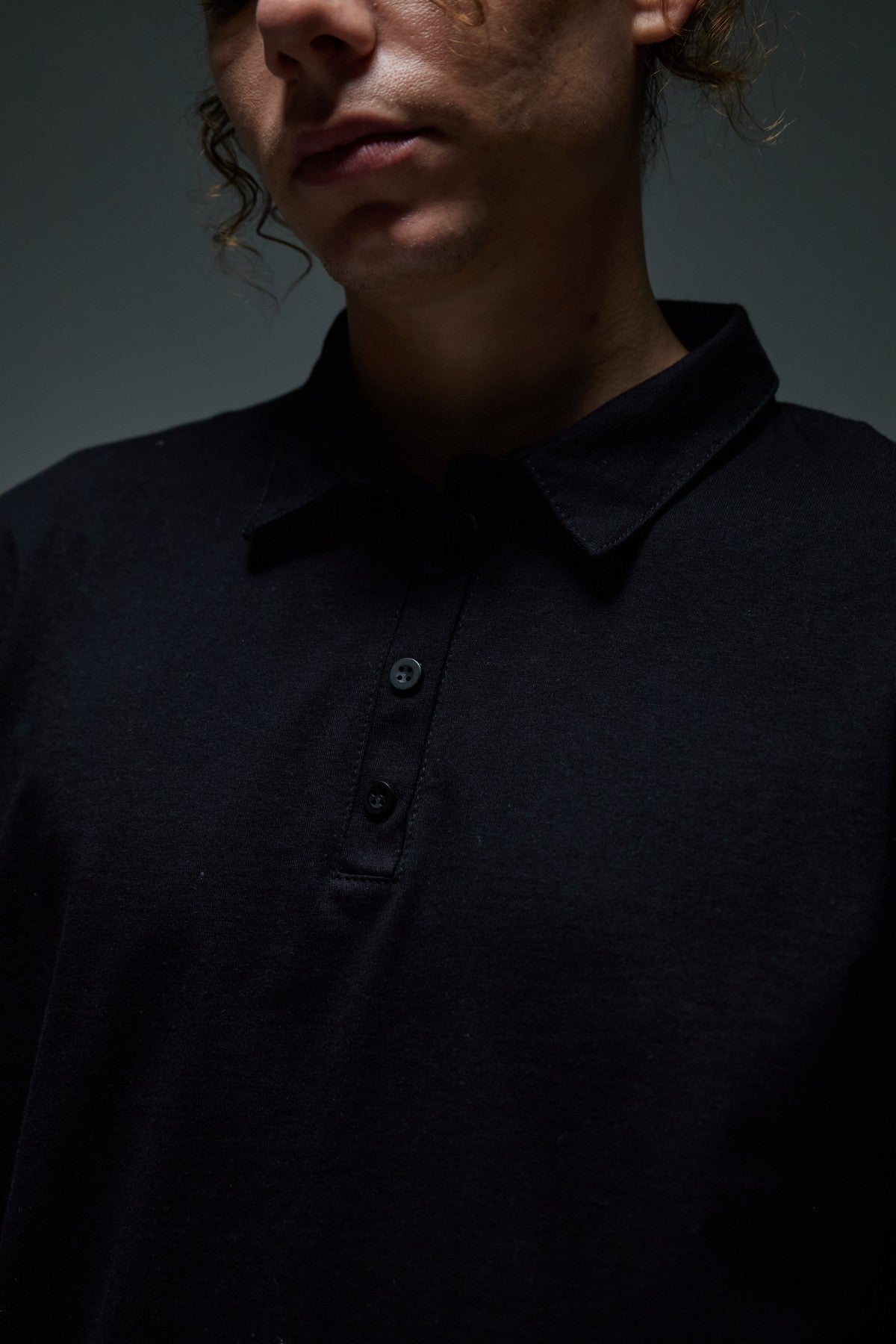 Chomba lisa de jersey pesado manga corta con botones a tono. Calce Regular.