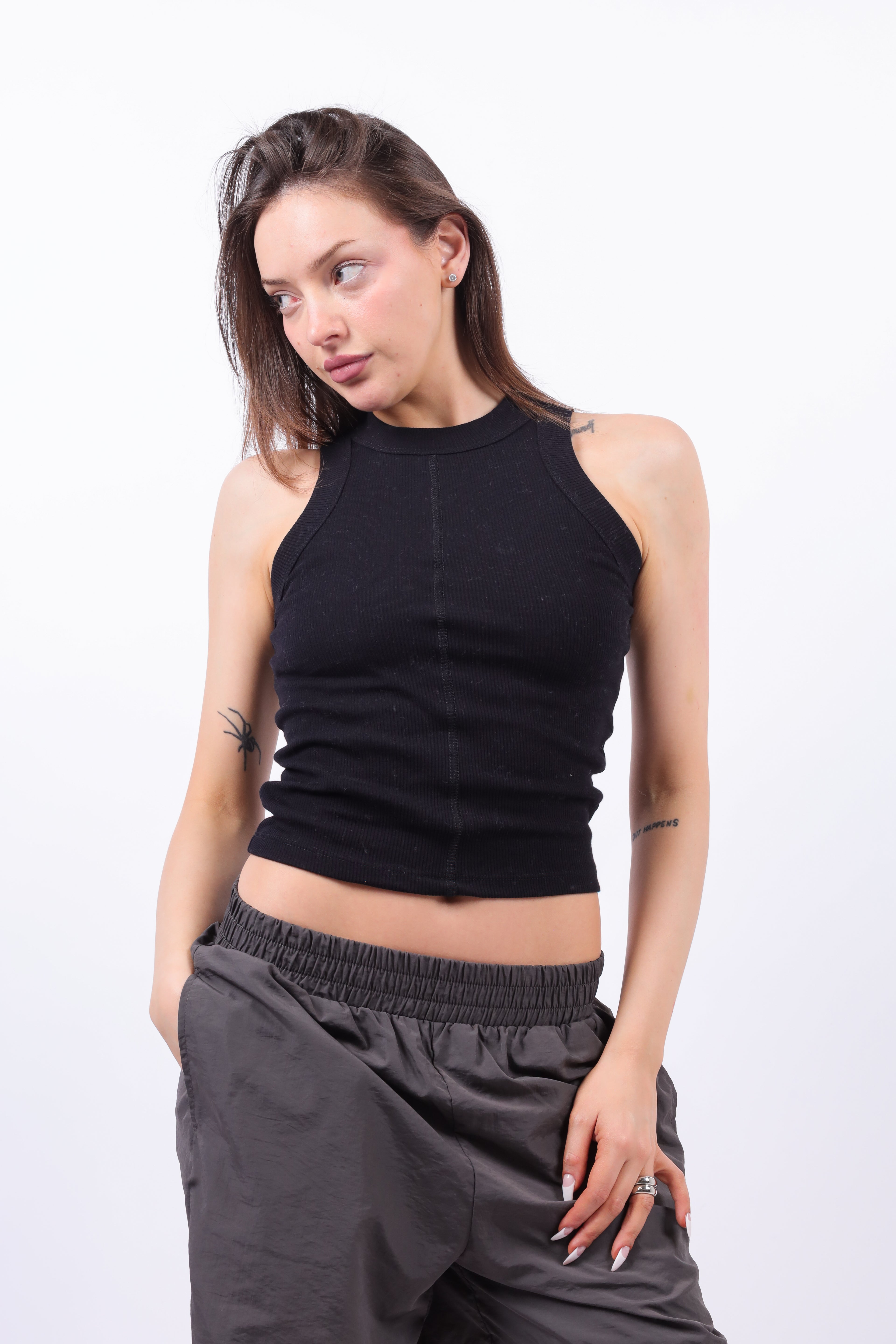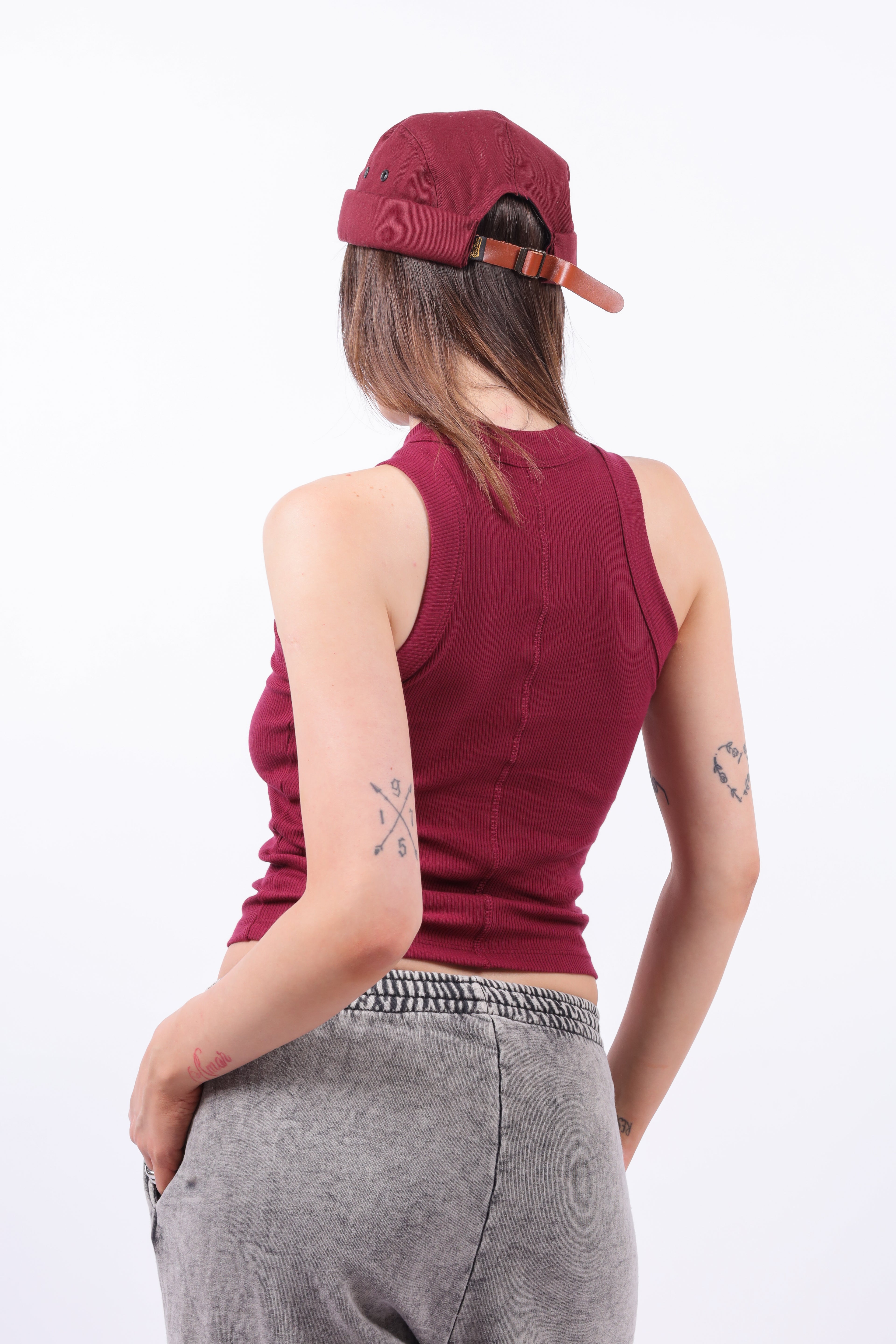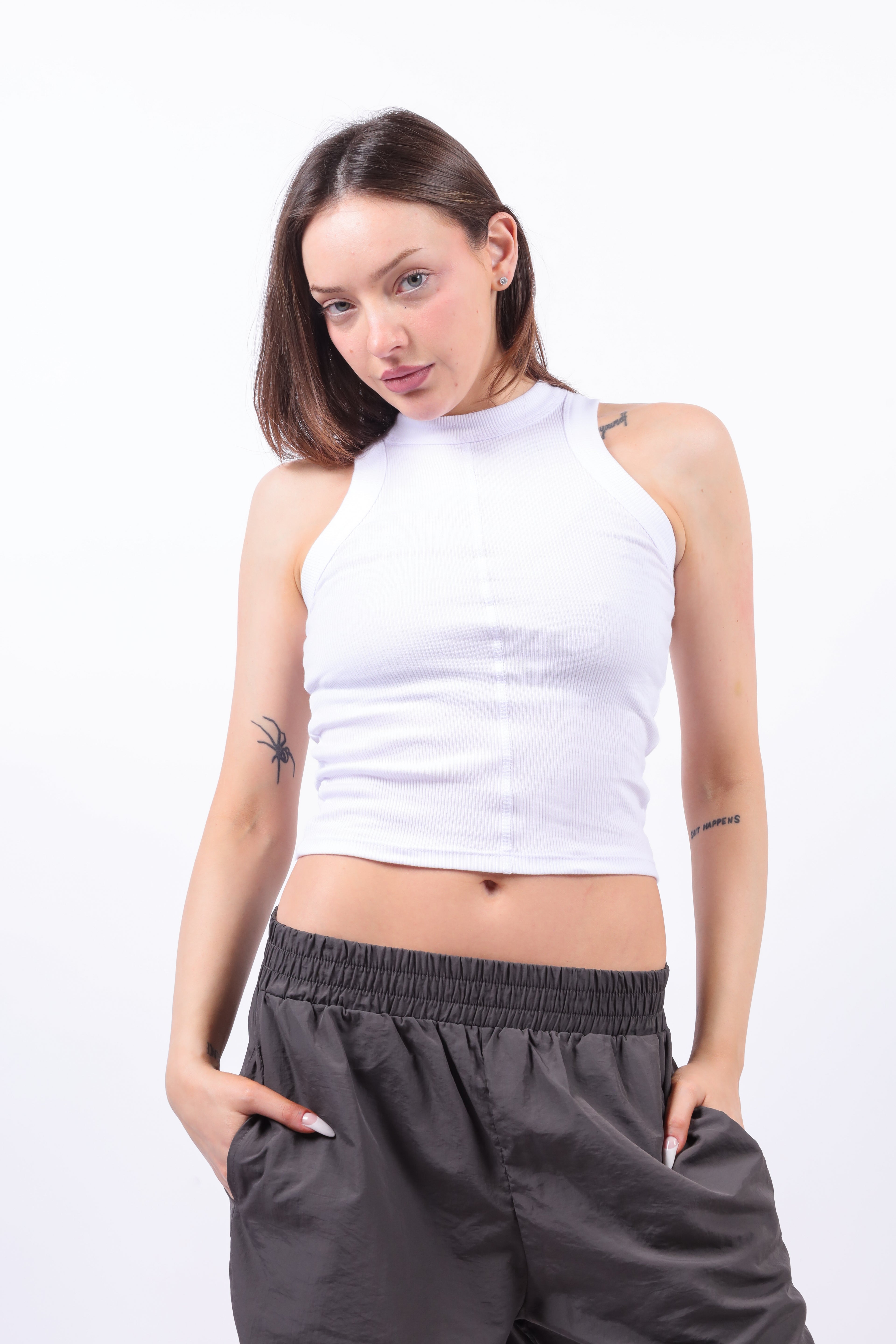 Musculosa lisa de morley con delantero y espalda partida con bordado. Collareta ancha en sisa y cuello. Calce Regular.