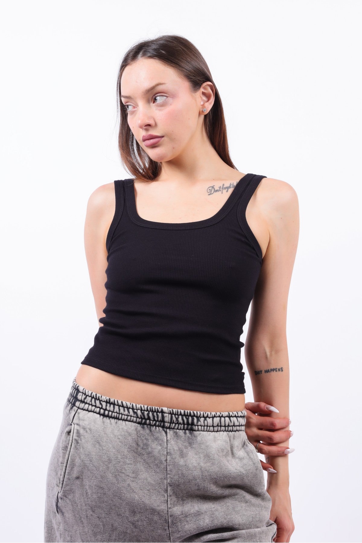 Musculosa básica de morley con cuello cuadrado. Collareta sisa y cuello. Calce Regular. Composición: 100% Algodón