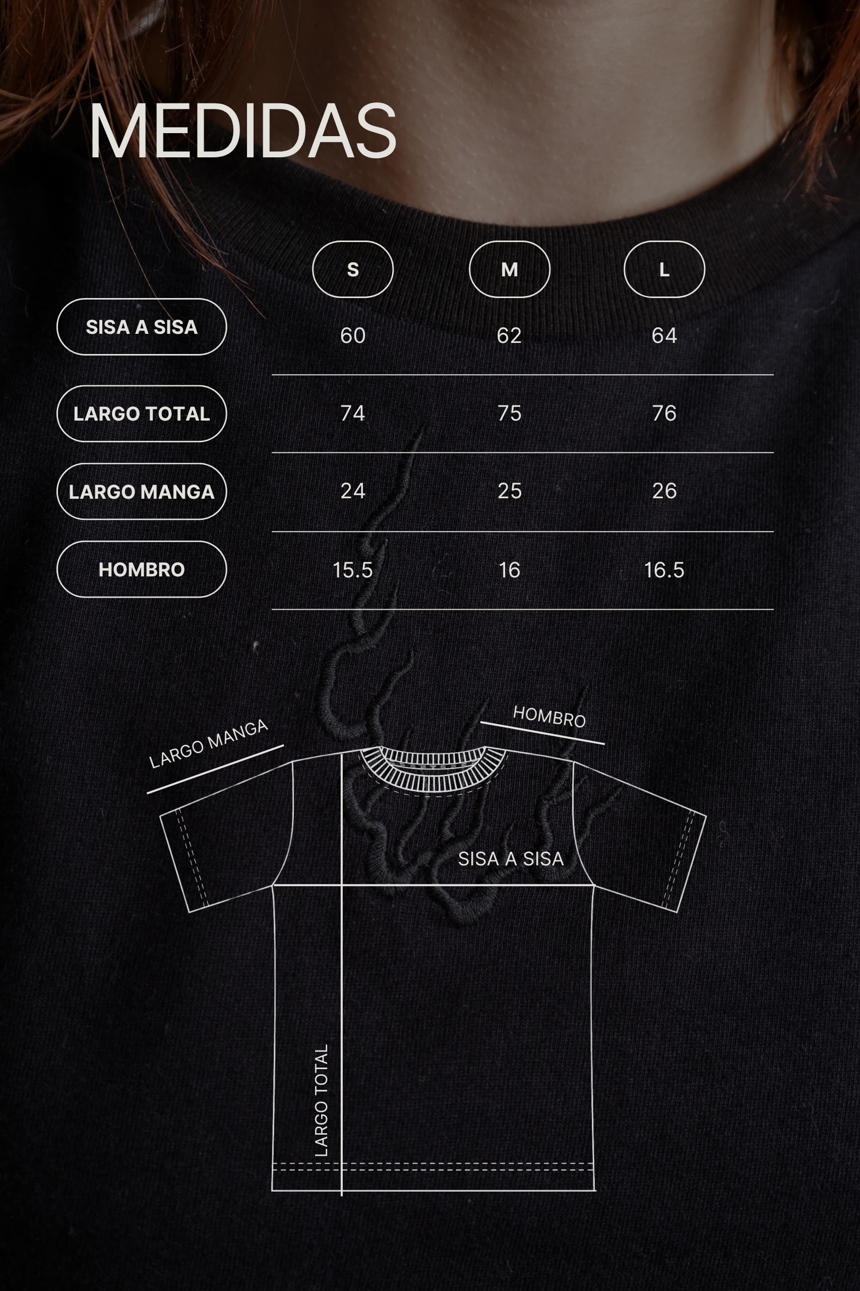 Remera de jersey pesado manga corta con cuello redondo de ribb. Calce Oversize. Composición: 100% Algodón