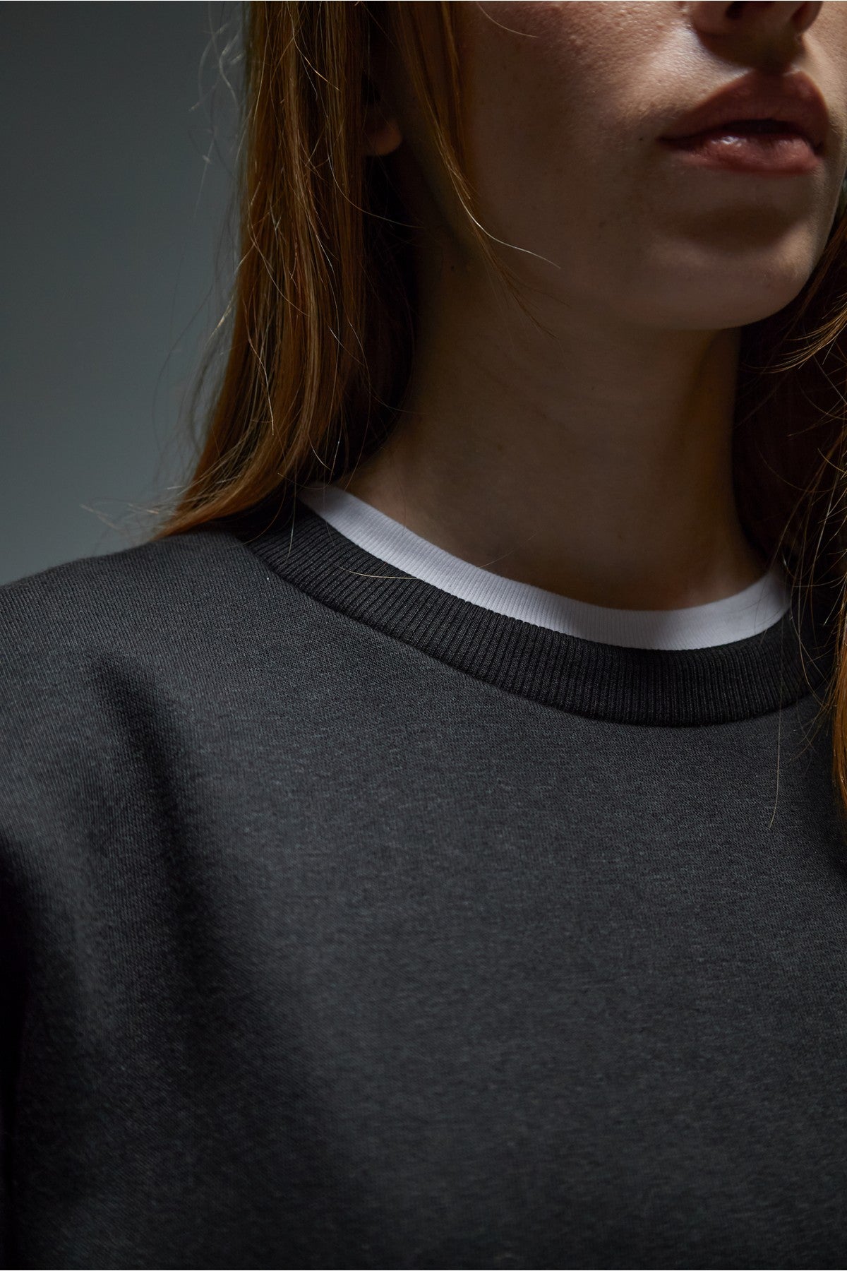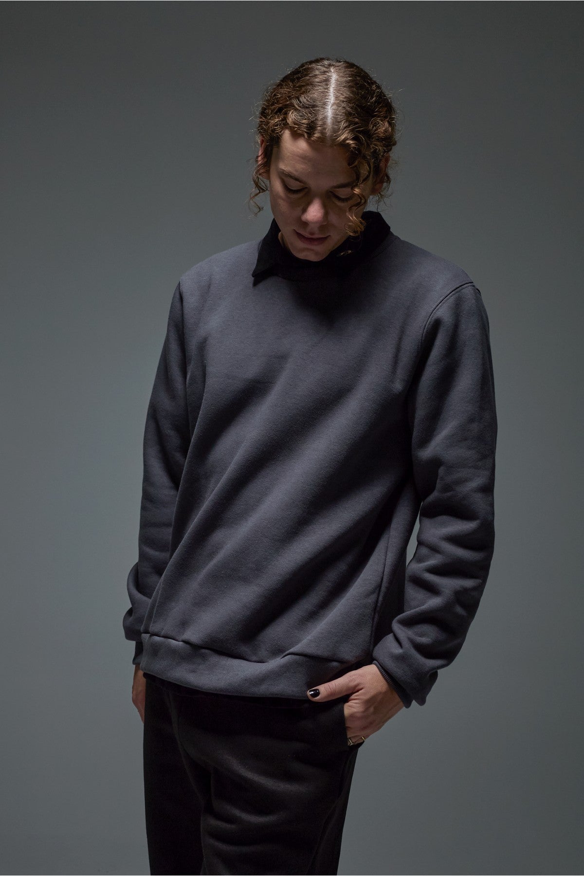Buzo clásico liso de frisa con cuello redondo y puños de ribb. Calce Regular.