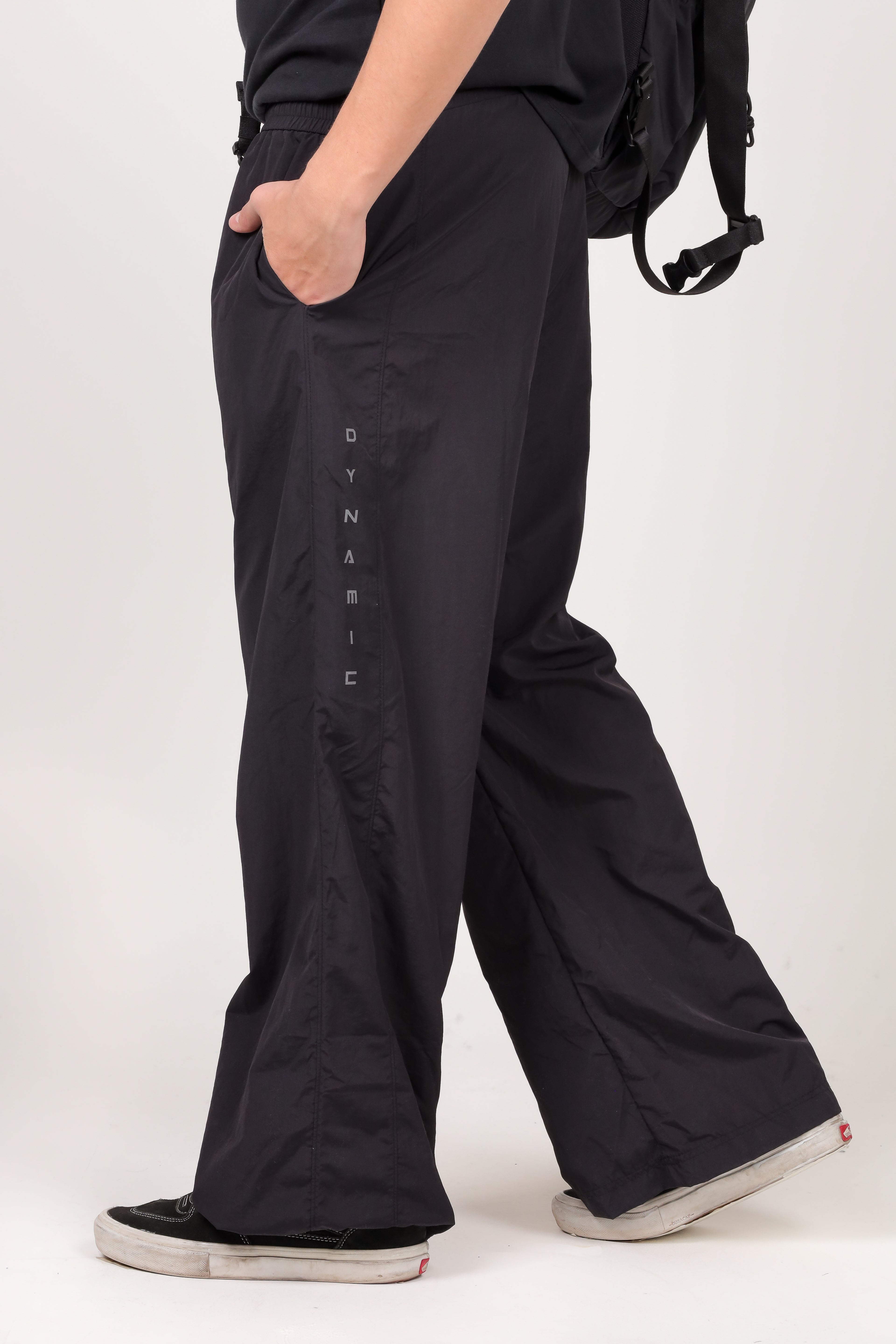 Pantalón de nylon semipermeable, con recorte lateral, cintura elastizada y bolsillos. Tiene una estampa exclusiva tornasolado en la parte lateral superior izquierda.