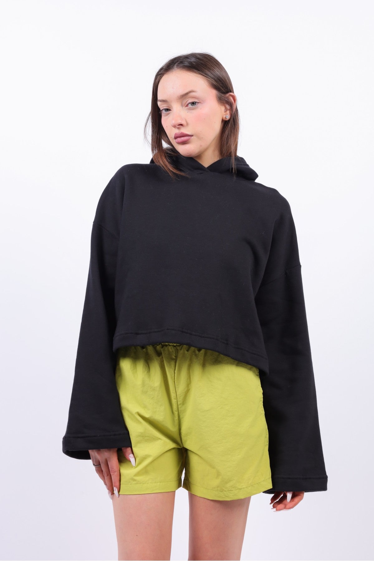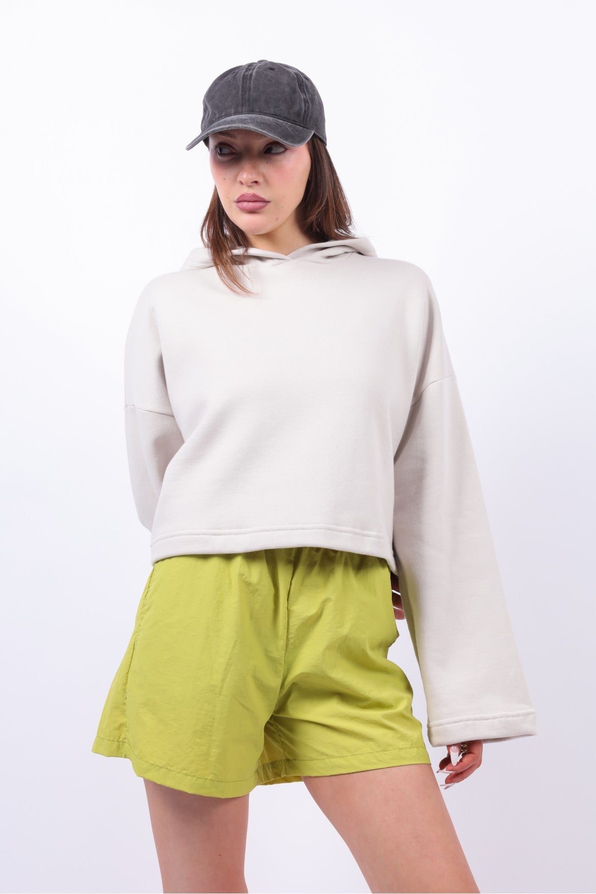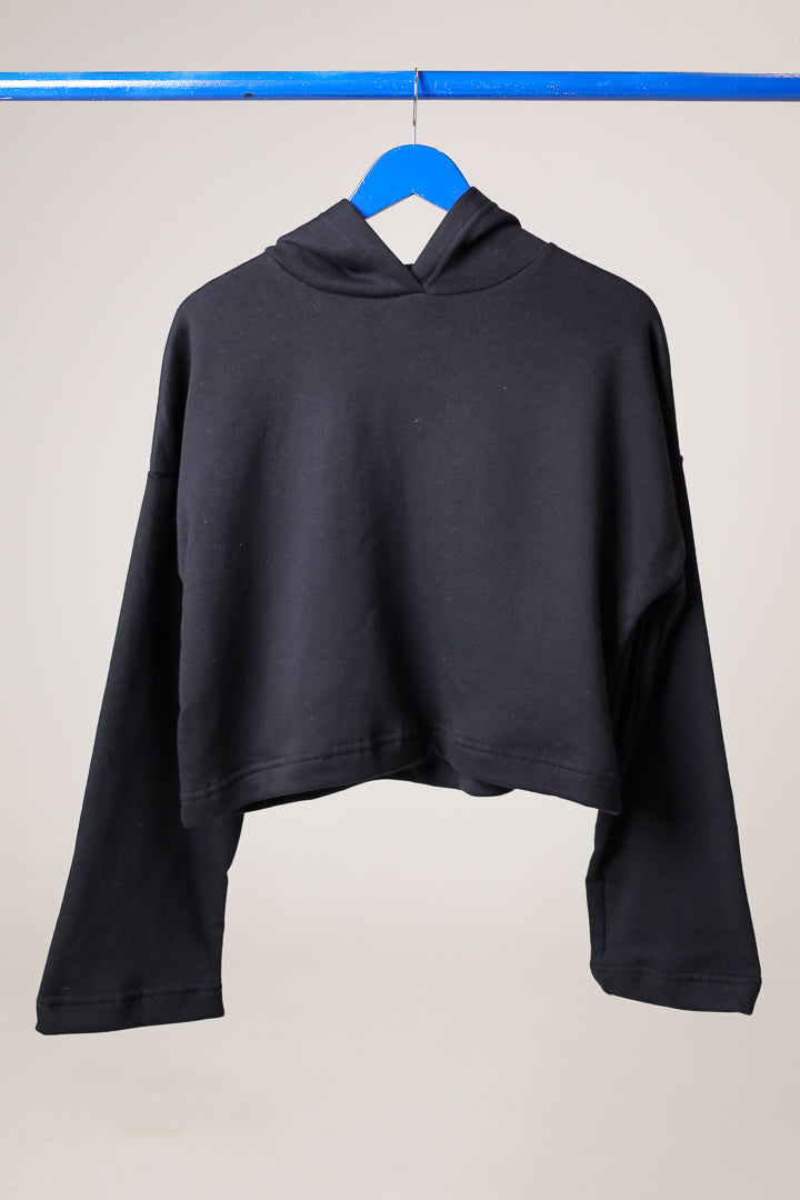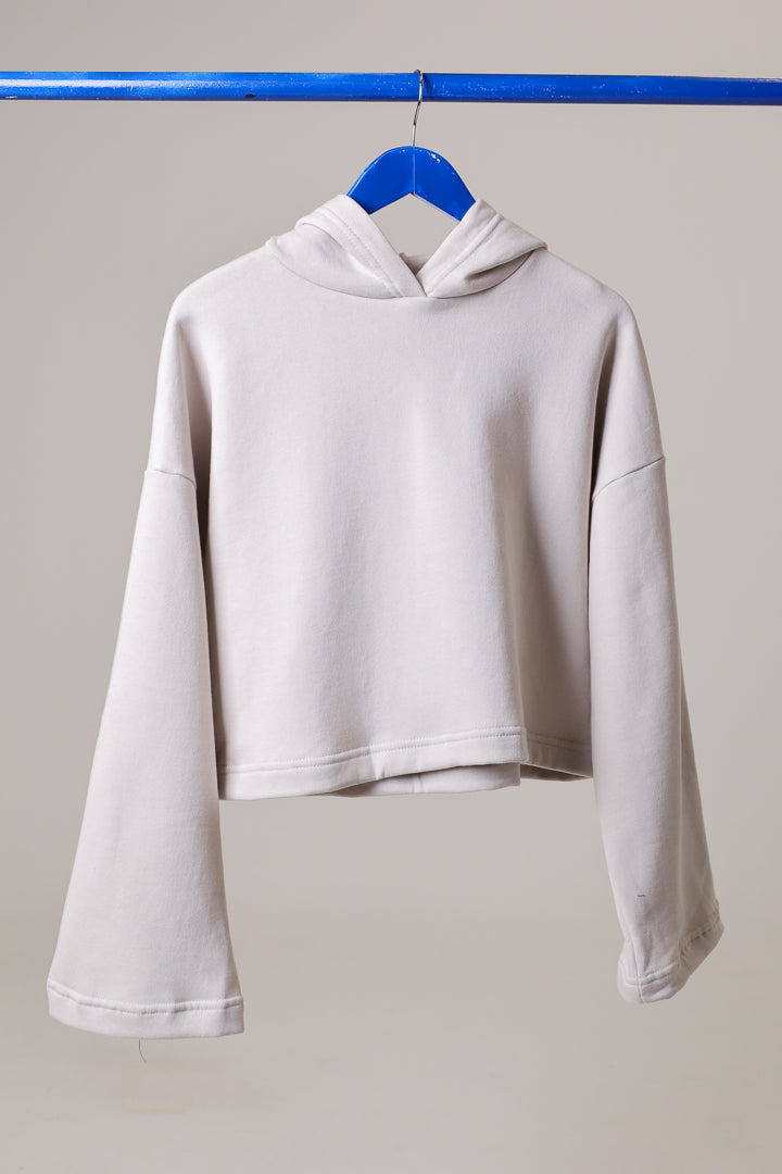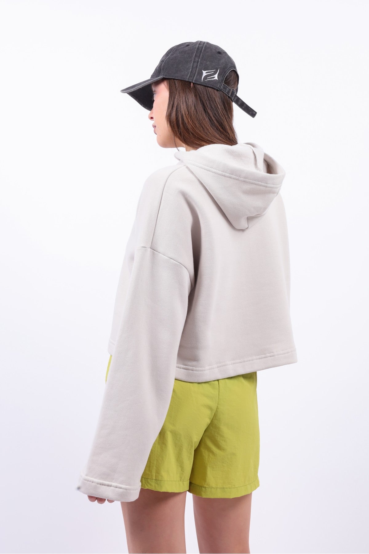 Buzo liso de frisa corto con capucha. Calce: Crop