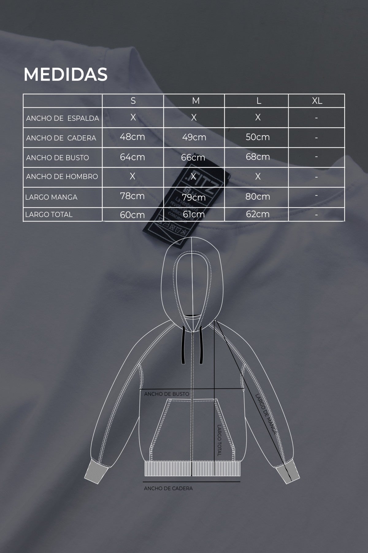 Campera de rustico pesado con bolsillo canguro y capucha. Puños y cintura de ribb. Cierre metálico YKK.
