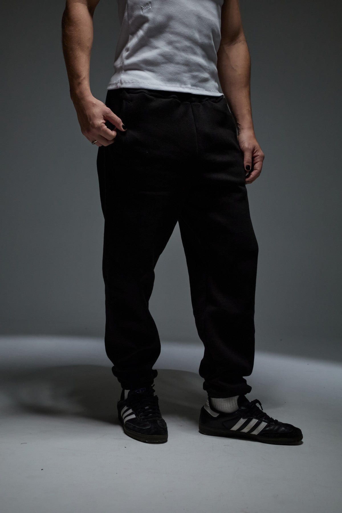 Pantalón de frisa con cintura y puños elastizados, con bolsillos. Calce Regular.