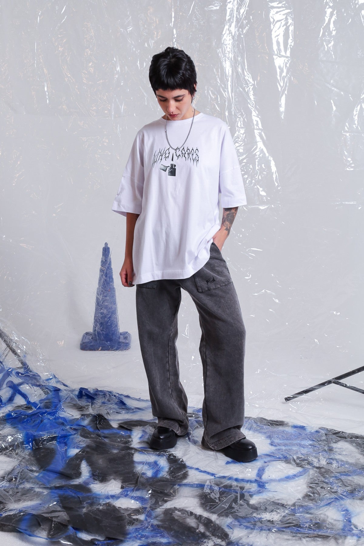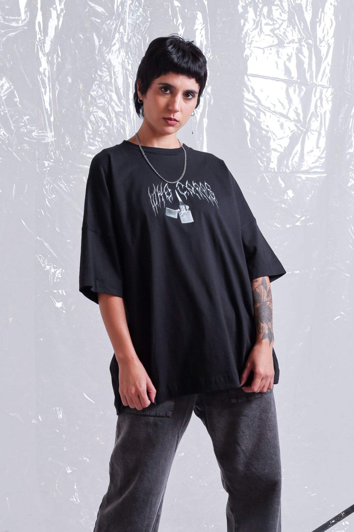 Remera de jersey pesado manga corta con cuello redondo de ribb. Calce Oversize, con estampa digital exclusiva.