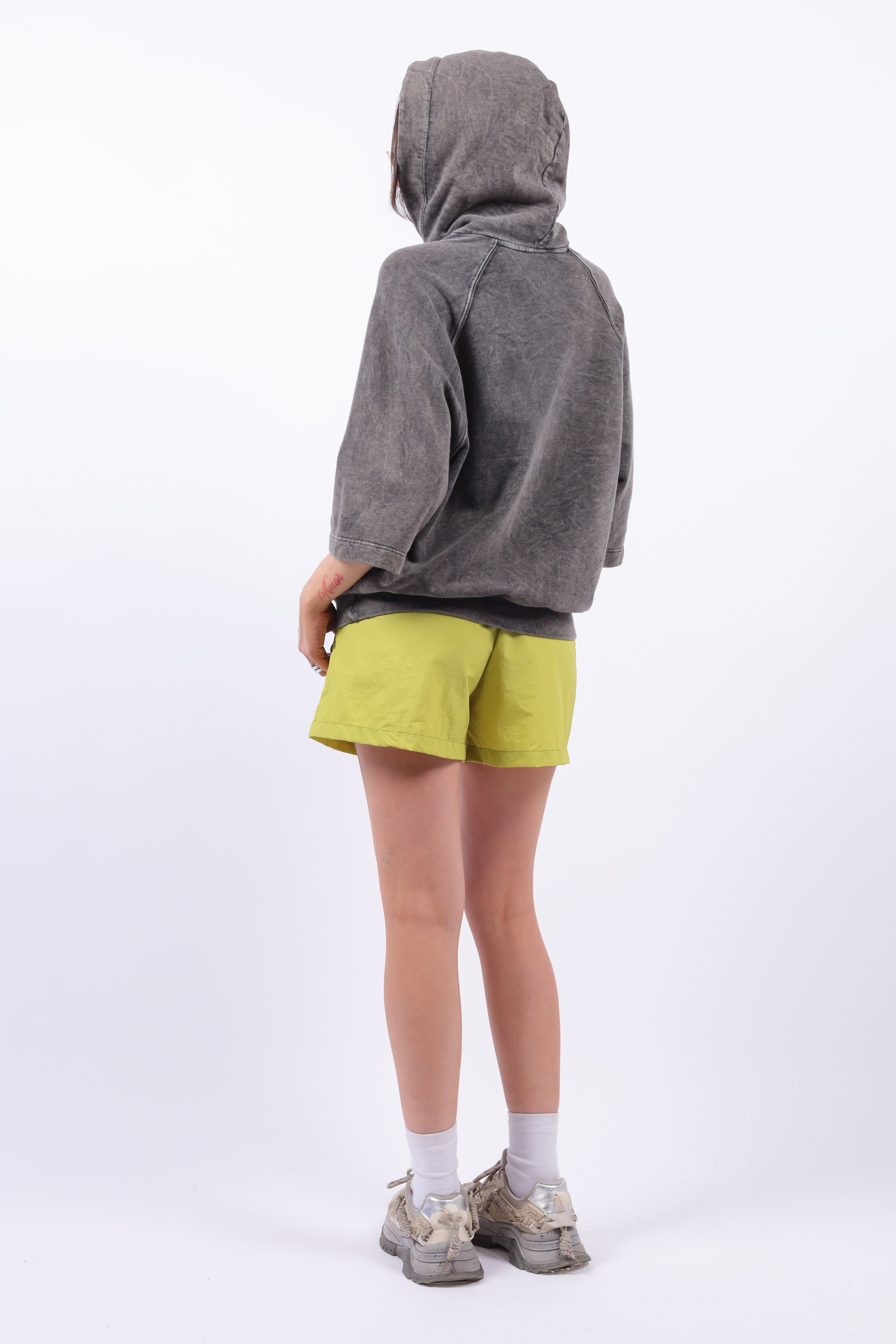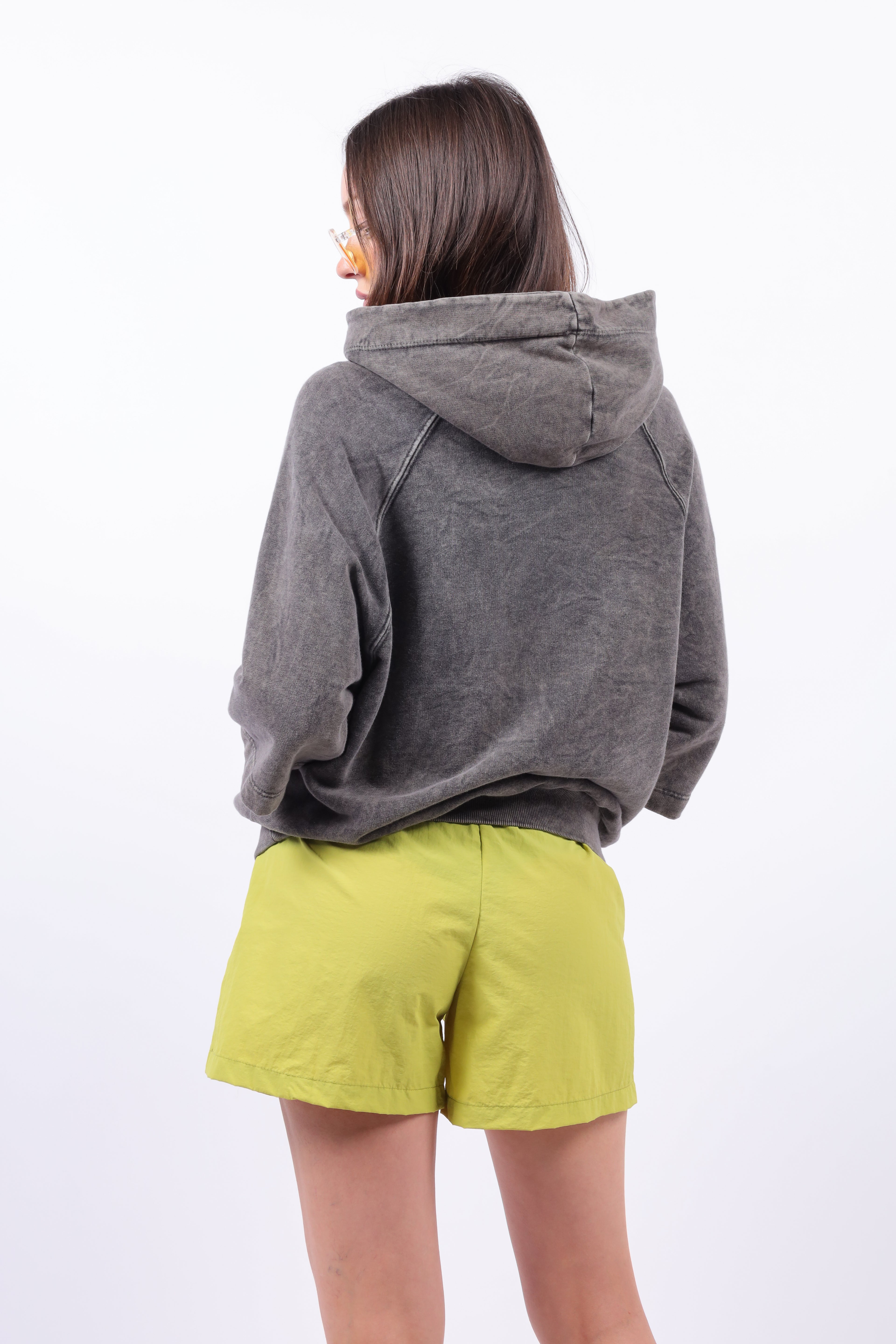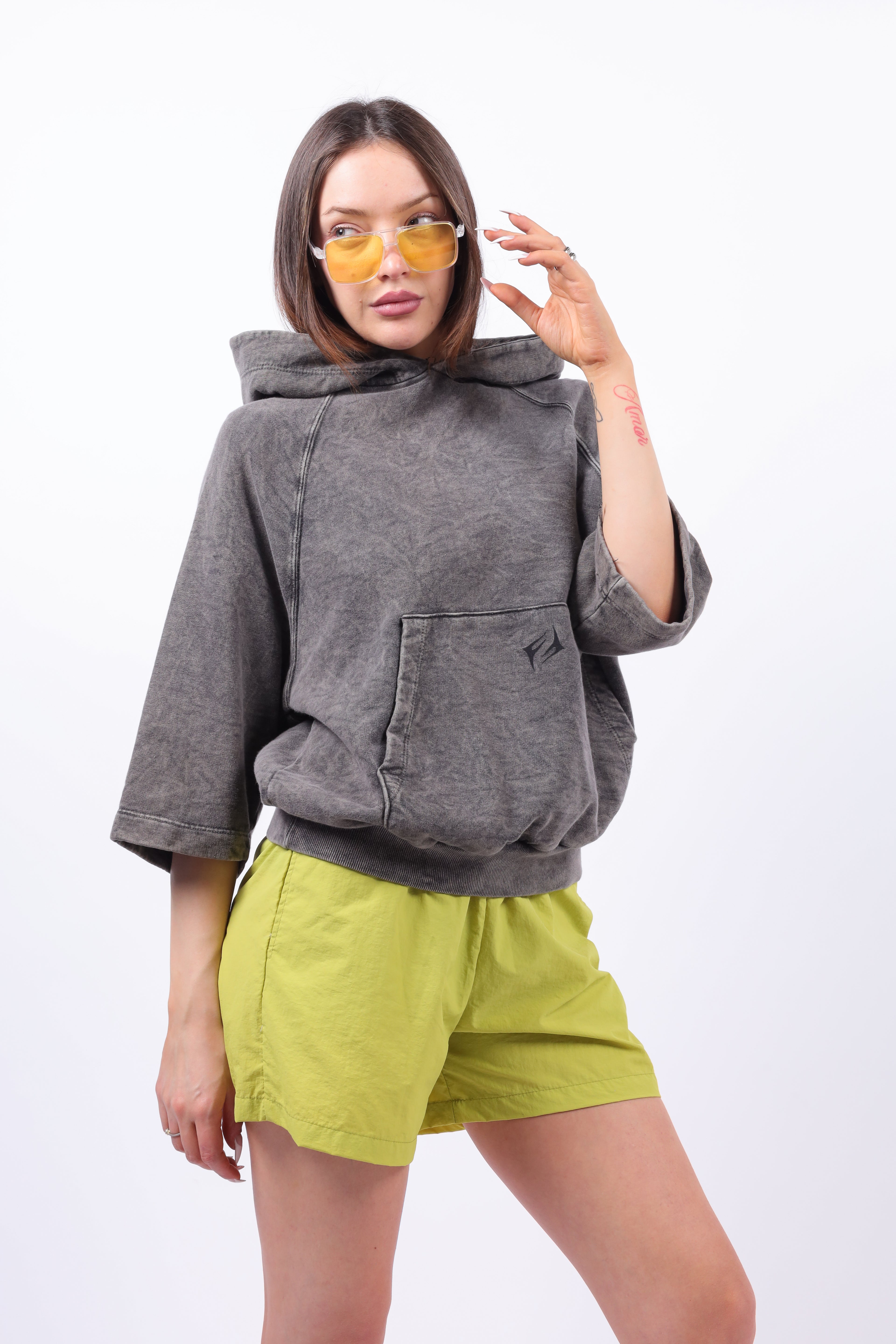 Buzo de rustico con manga ranglan 3/4, con bolsillo canguro y capucha. Logo estampado. Esta prenda lleva un proceso artesanal de lavado acid, puede variar levemente en cada prenda.