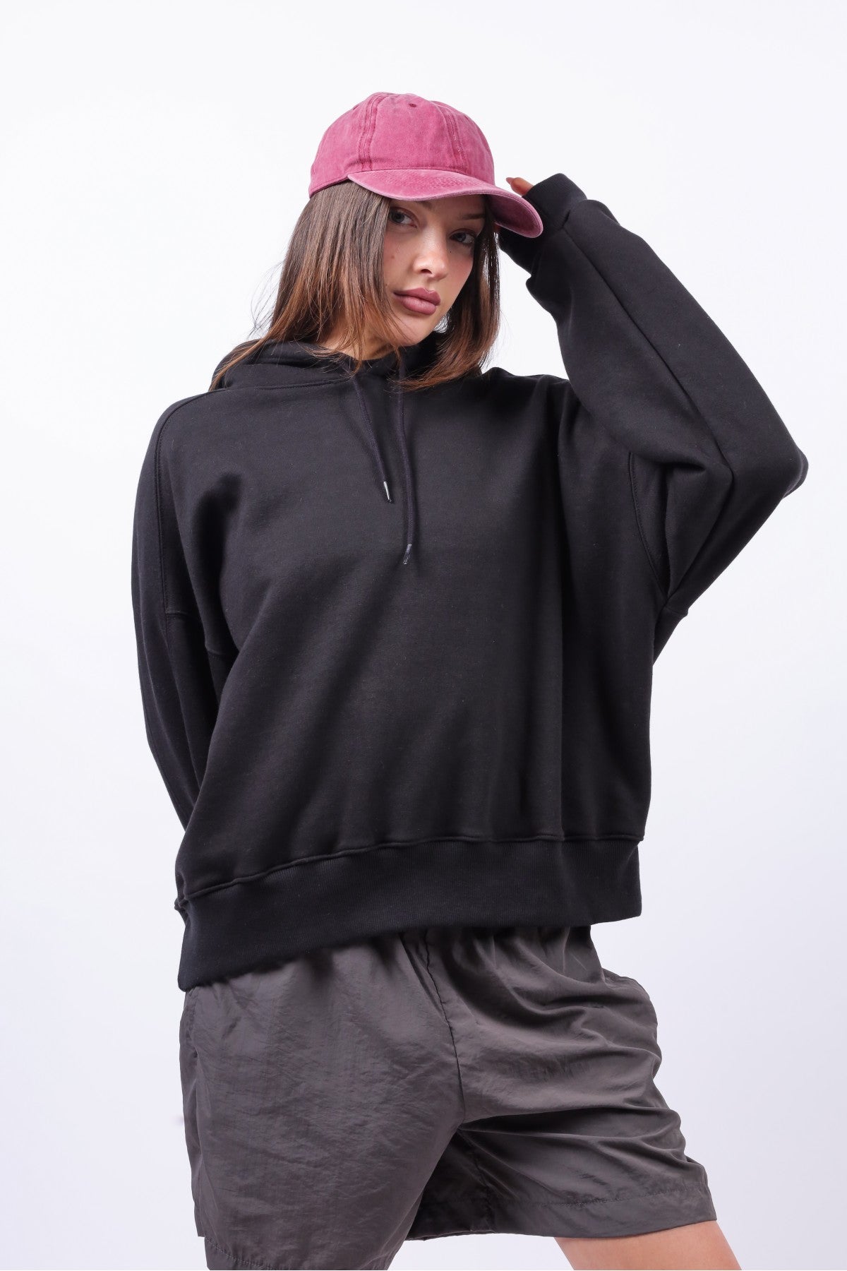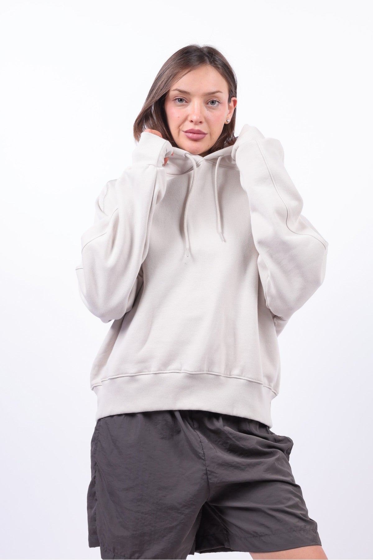 Buzo de frisa con capucha y cordón. Tiene recorte en manga. Calce Boxy. Composición: 100% Algodón.