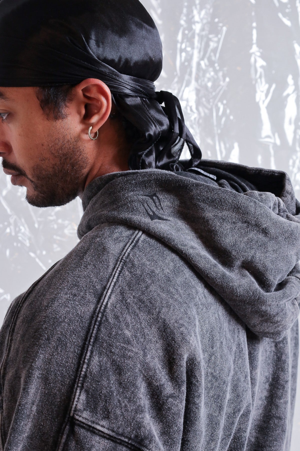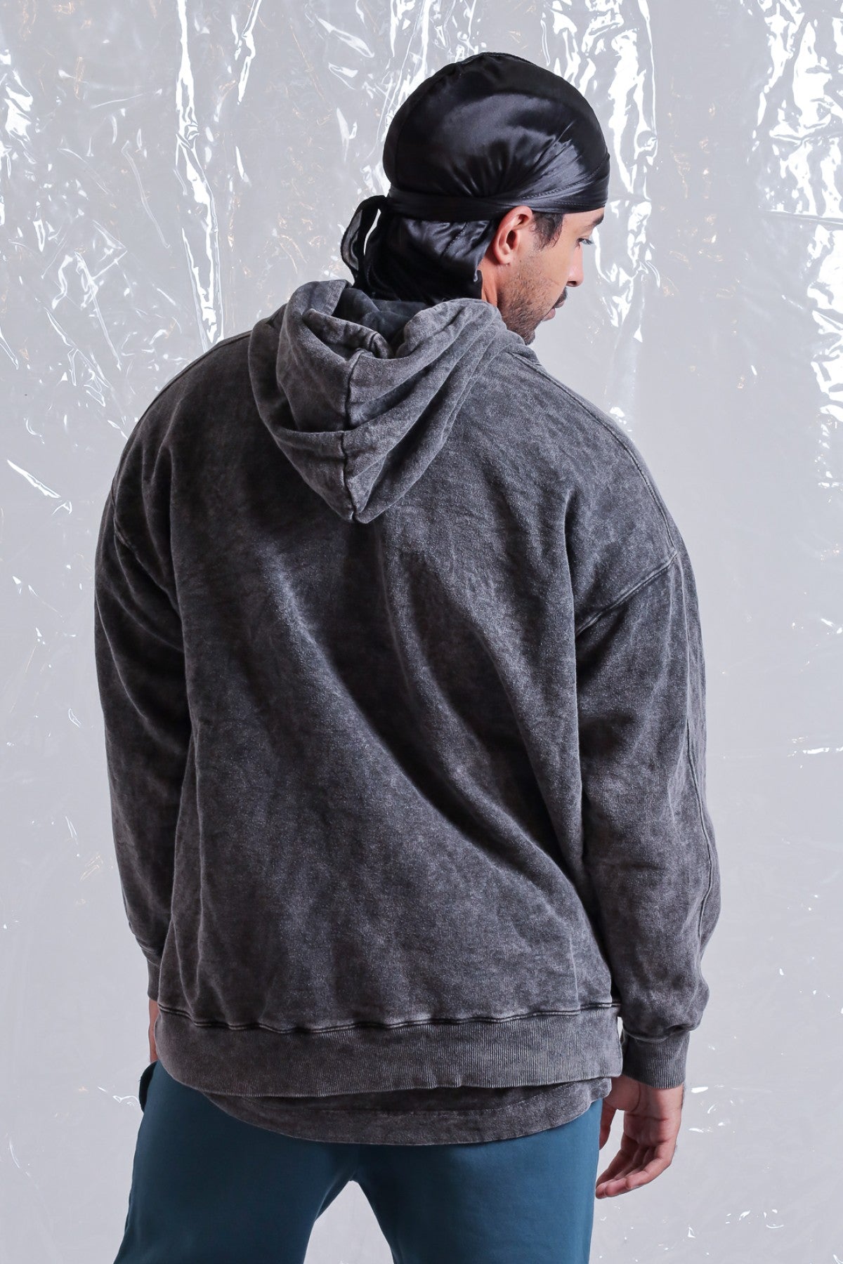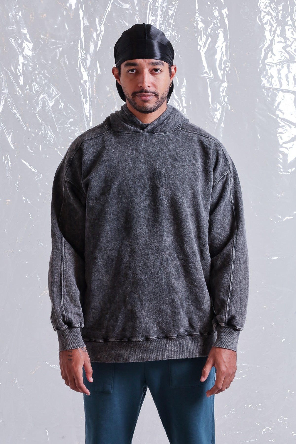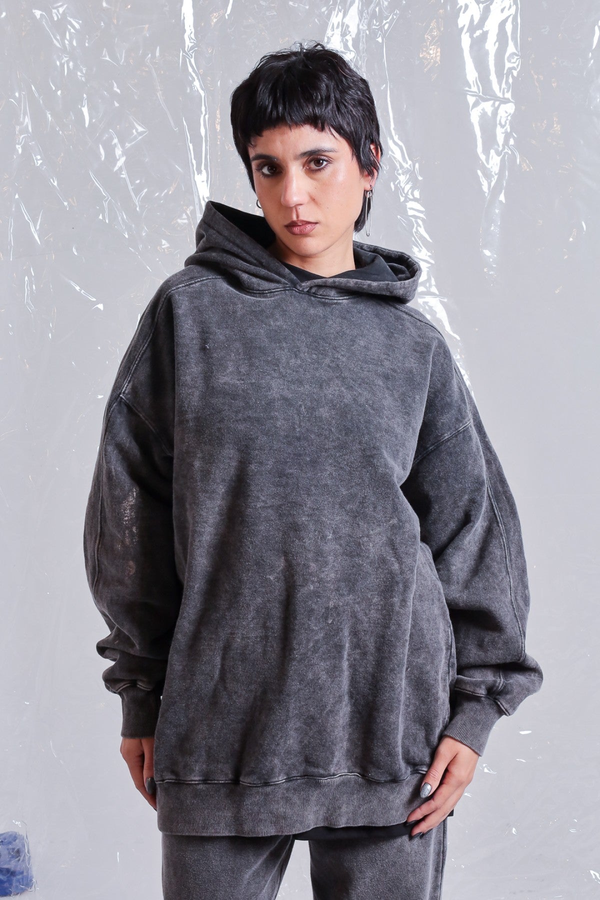 Buzo de frisa con recortes y capucha. Calce Oversize. Logo estampado. Esta prenda lleva un proceso artesanal de lavado acid, puede variar levemente en cada prenda.