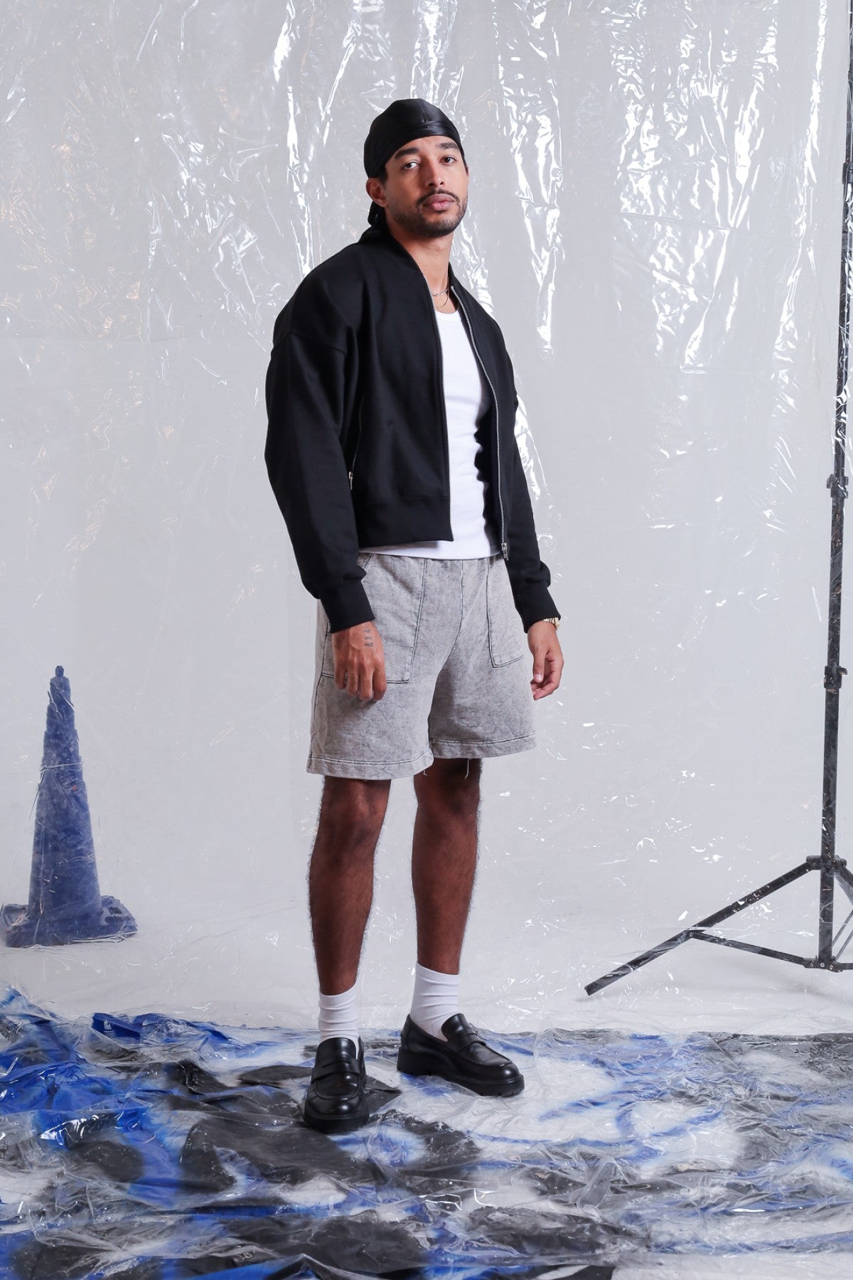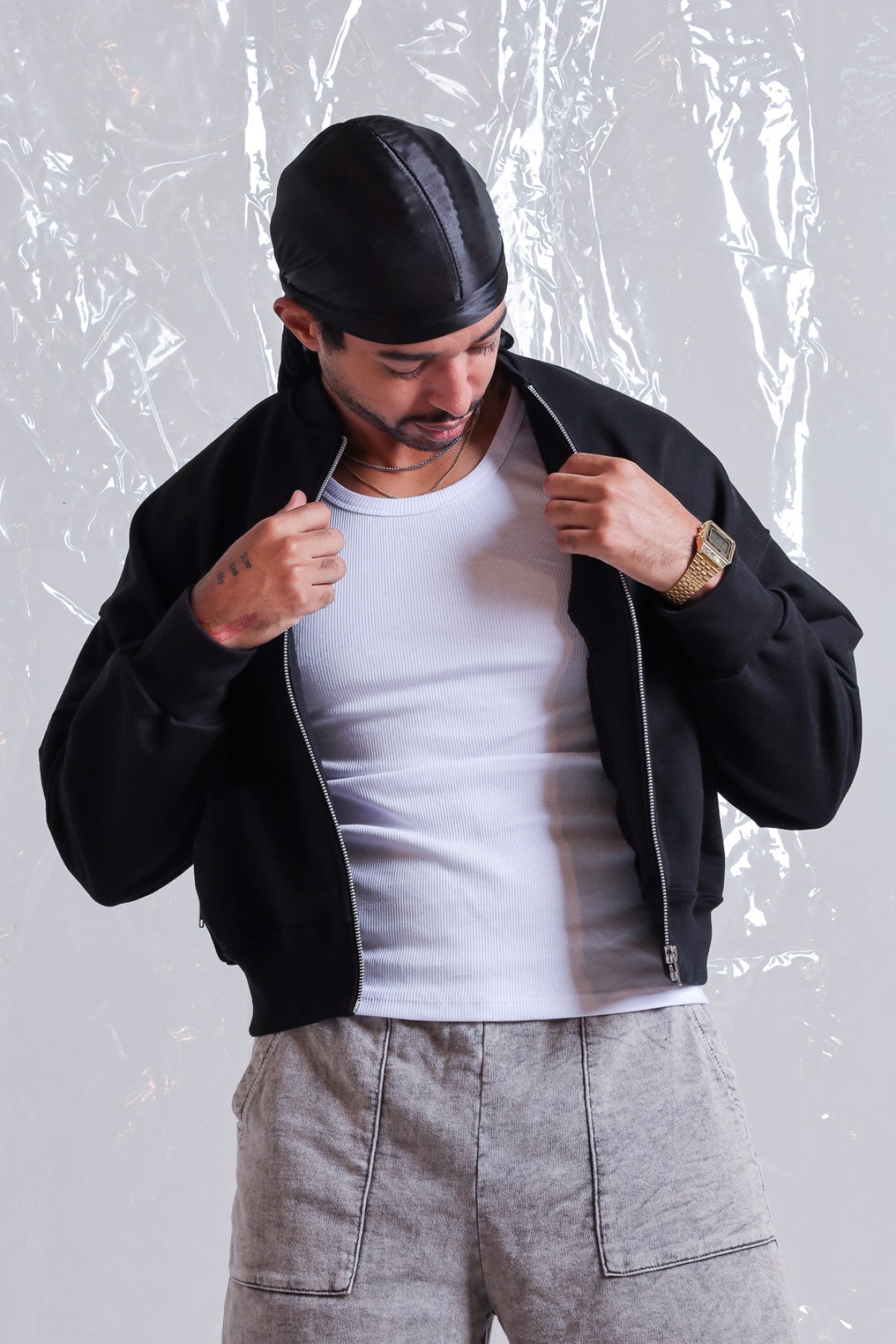 Campera bomber de rustico pesado con cuello y puños de ribb. Bolsillos internos delantero con cierre metálico YKK.