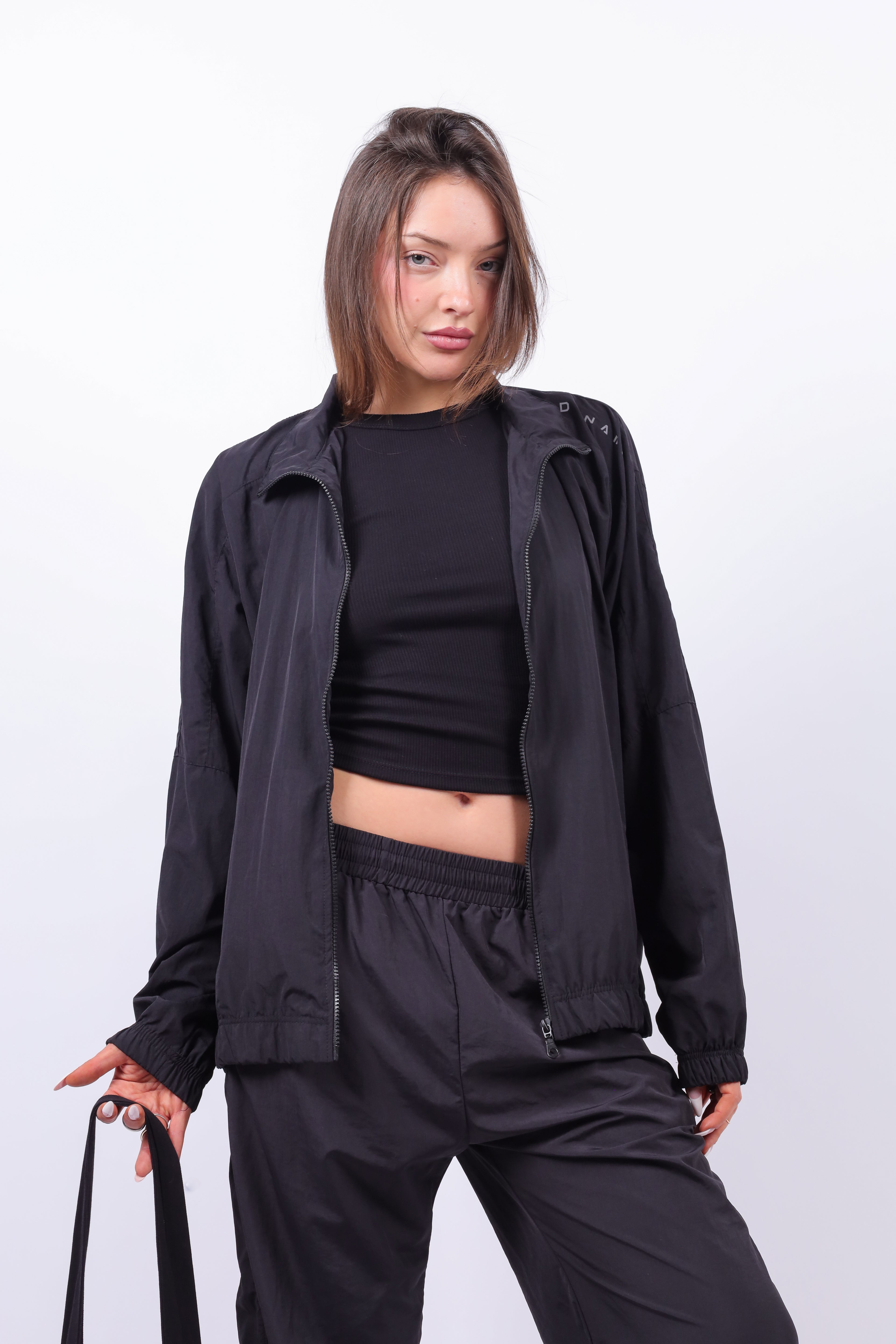 Campera de nylon semipermeable con múltiples recortes y estampa exclusiva ubicado en el hombro lateral izquierdo. Bolsillos forrados y elástico embutido en la cintura y puños. Cierre metálico YKK.