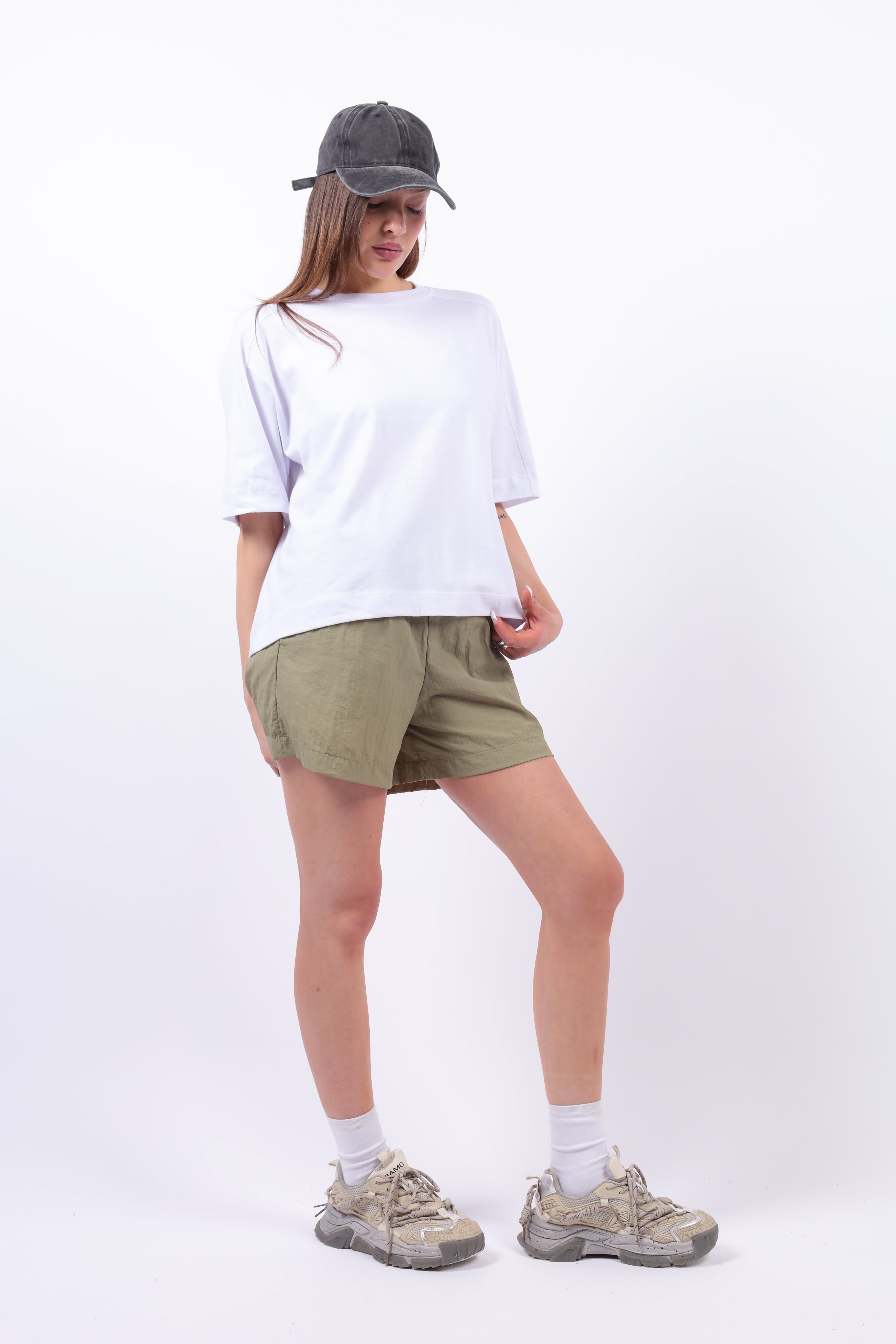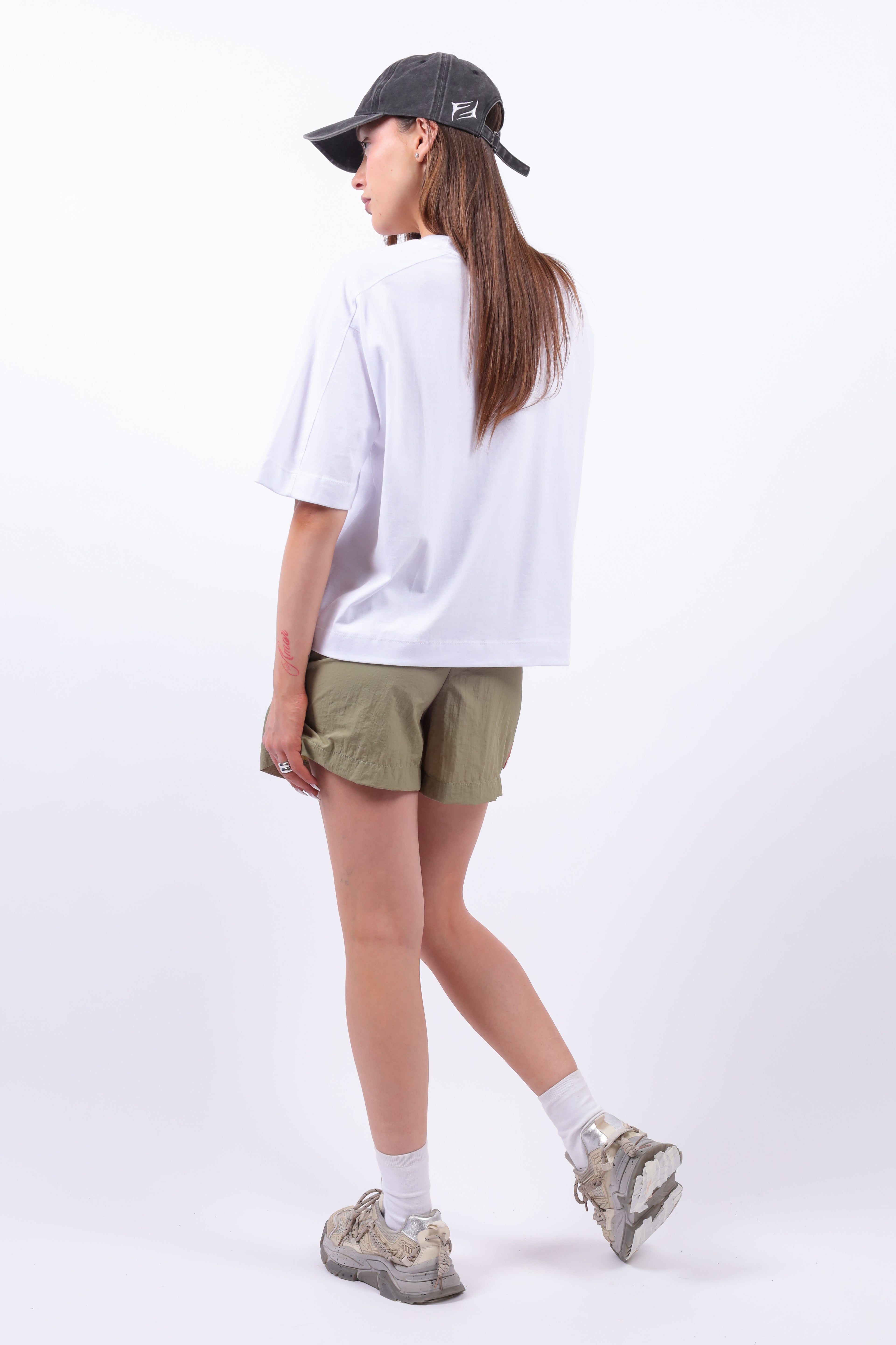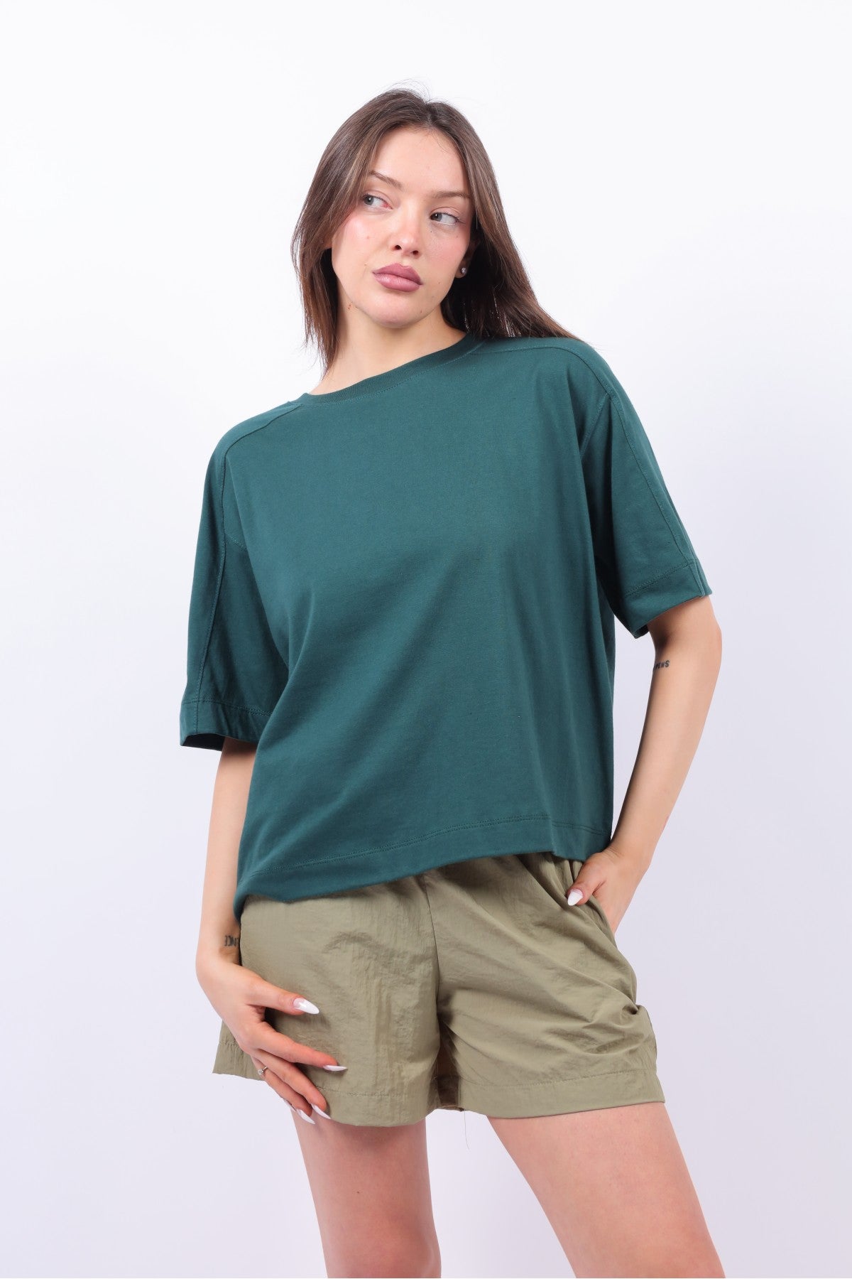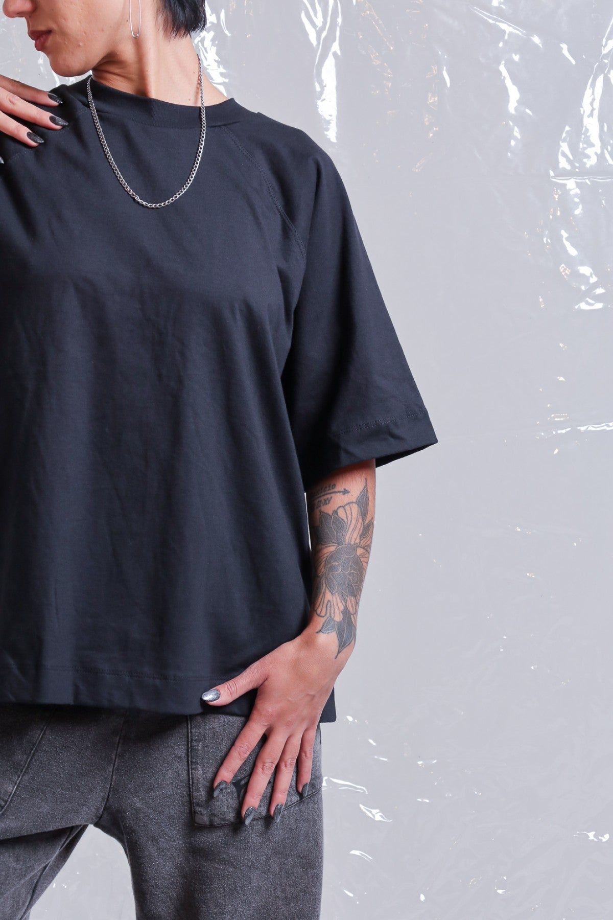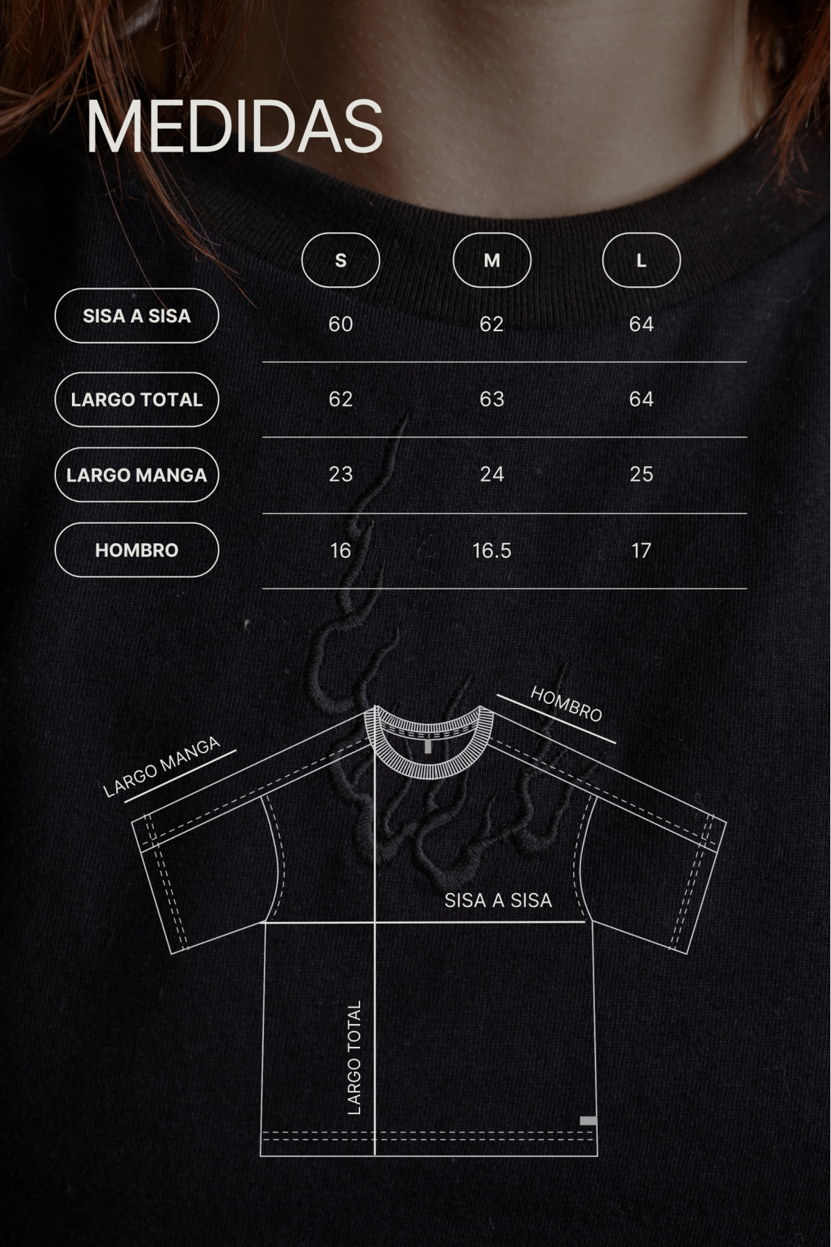 Remera de jersey pesado con cuello redondo con ribb y recorte en manga. Calce Relajado. Composición: 100% Algodón
