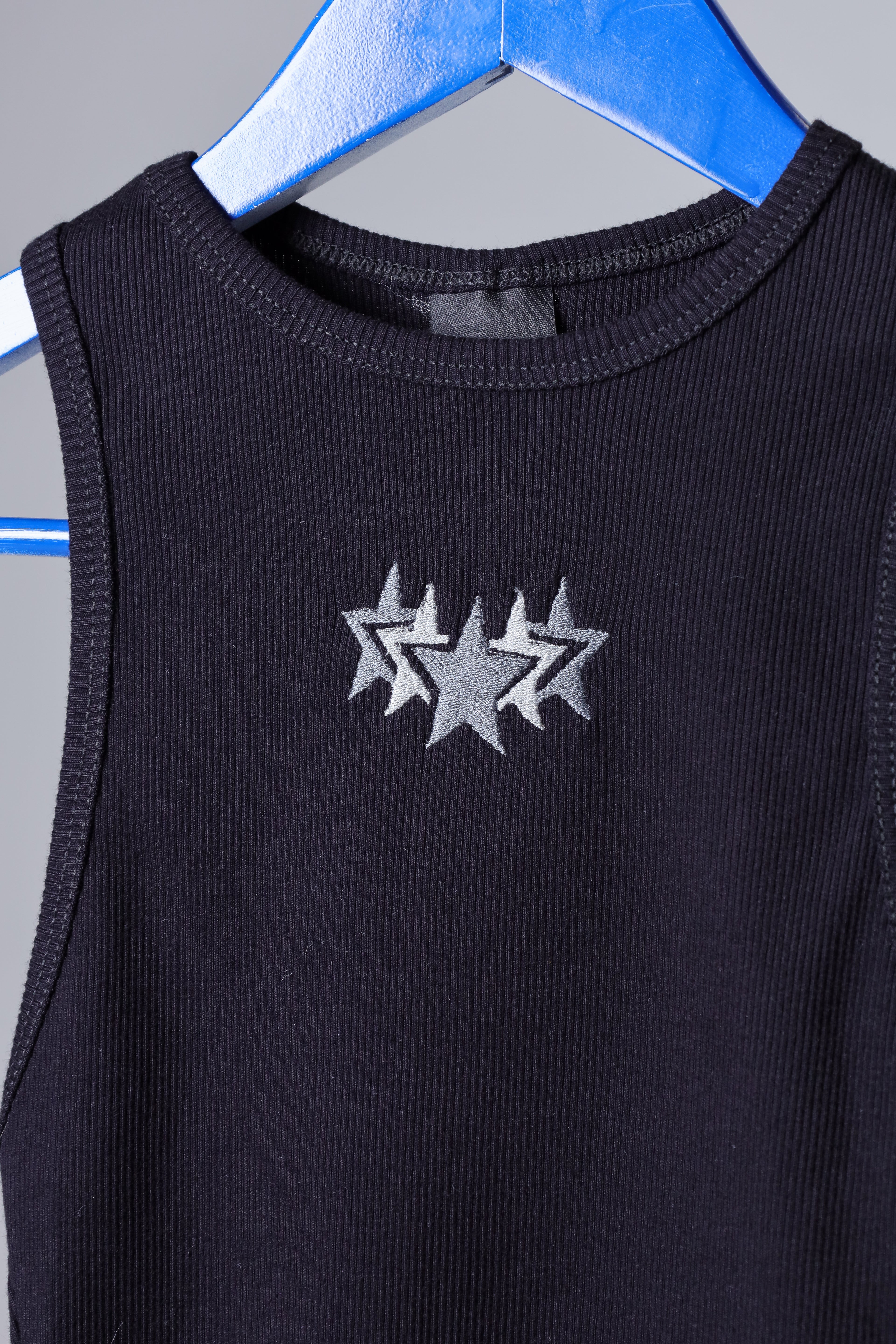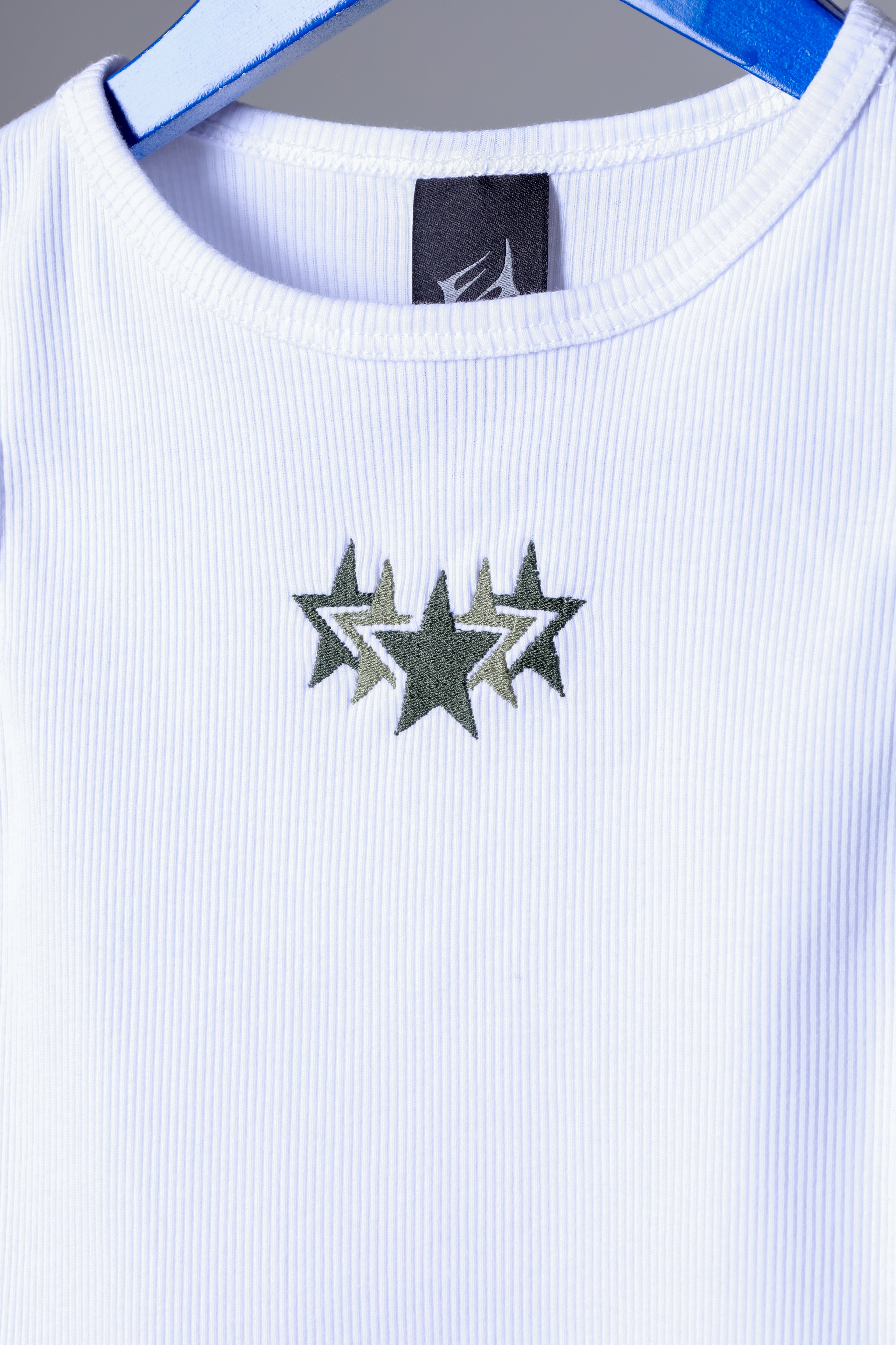Musculosa de Morley con cuello redondo y hombro .Collareta ancha en sisa y cuello. Calce Regular y Bordado exclusivo. Composición: 100% Algodón